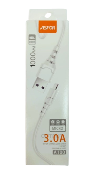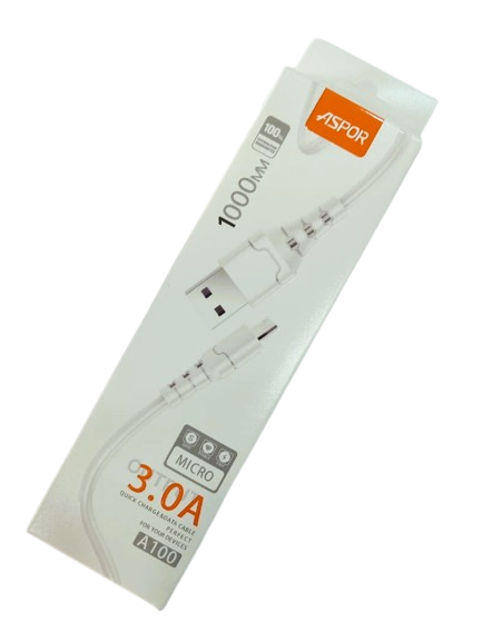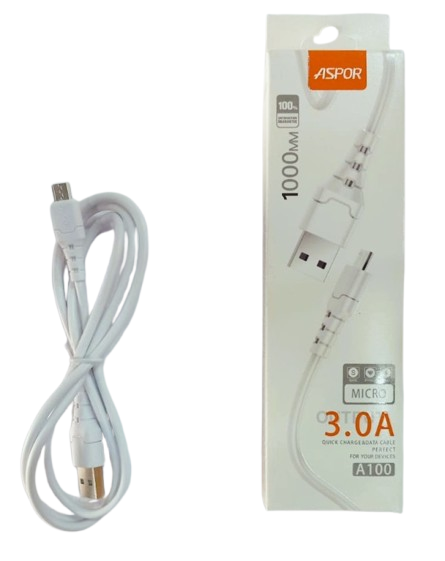 Aspor Micro Charger USB charger. 1000mm, 3.0A. Durable and fast. White