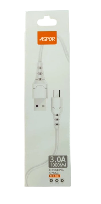 Aspor Micro Charger USB charger. 1000mm, 3.A. Durable and fast. White